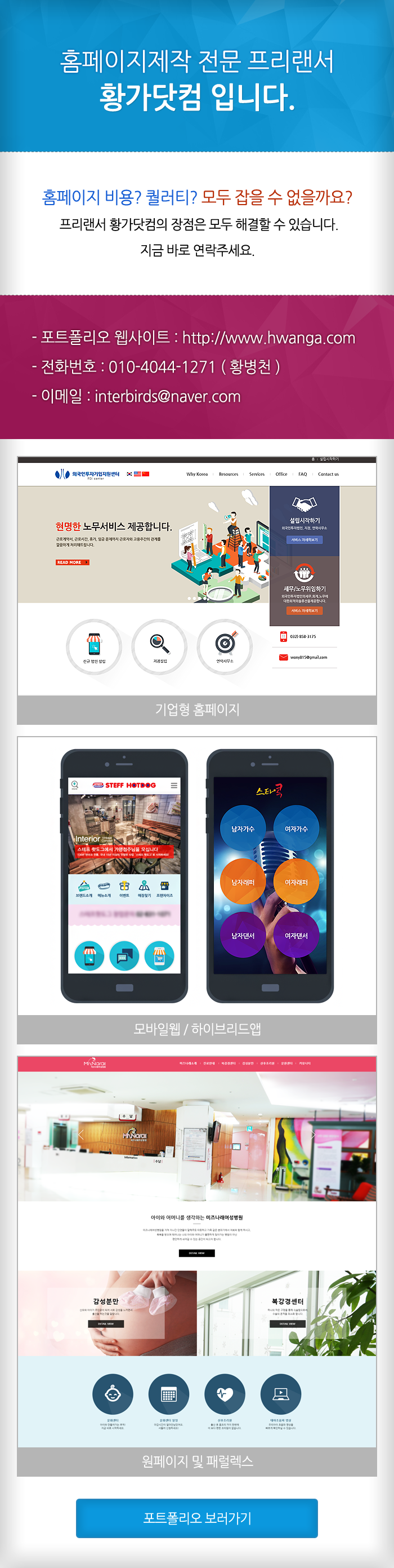 홈페이지제작 전문 프리랜서 황가닷컴입니다.